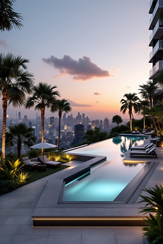 Relax and rejuvenate in the stunning infinity pool offering panoramic views of the city skyline.